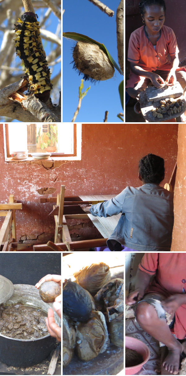 In Ambalavao gab es neben Zebus und einem Weingut auch eine Stätte der Seidenherstellung zu besuchen, Soalandy. Man kann sich ansehen, wie aus den Kokons die Seide gewonnen und dann weiterverarbeitet wird und steht dann zwei Stunden im Laden und weiß nicht, für welchen der unterschiedlichsten Schals oder Decken man sich entscheiden soll. Es sind „grobere“ Produkte als Seidentücher, die man so im Sinn hat, die so fließend sind, aber sie haben ihren ganz besonderen Reiz und tragen sich wunderbar, wie ich mittlerweile bestätigen kann.
