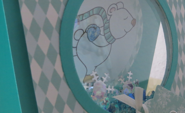 I knew this was going to happen: here he is again, the little polar bear from Pink Cat Studio. Just can’t let him go. This time I made a shaker card, though.