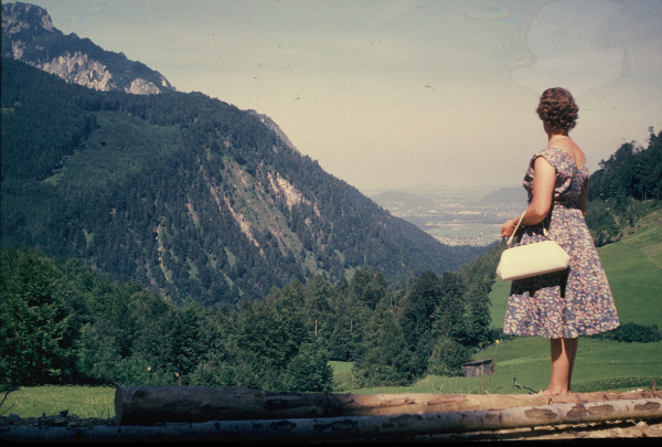 Meine Oma vor Bergpanoroma – ohne Fernglas! [Inwiefern das relevant ist, kann man hier nachlesen.] Sie wurde am 19. März 1914 geboren und wäre somit heute 103 Jahre alt geworden. Damit ist dieser Beitrag eine Art Geburtstagsgruß. Sie hieß übrigens Josefine, genannt Finchen. Dass es meine Großeltern in die Berge zog, war mir bekannt. Südtirol, Berchtesgaden, Schellenberg, Meran – davon haben wir immer Erzählungen gehört. Von strafrechtlichen Verfolgungen wegen Dienstahls war allerdings nie die Rede! Einen Zeugen gab es ja – der wirkt in der Ferne auch irgendwie, als würde er gleich laut schreiend darauf aufmerksam machen: