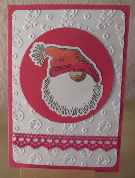 This April has been a month of the more hectic kind again – I hope it was decidedly calmer at your respective ends. Time is running out over at the ABC Christmas Challenge’s „H for Hats“ prompt so here goes, my second creation with my new tomte stamp from gummiapan:
