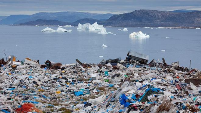 Plastikmüll in einer Bucht in Westgrönland / Plastic trash in a bay in Western Greenland (seen on tagesschau.de)