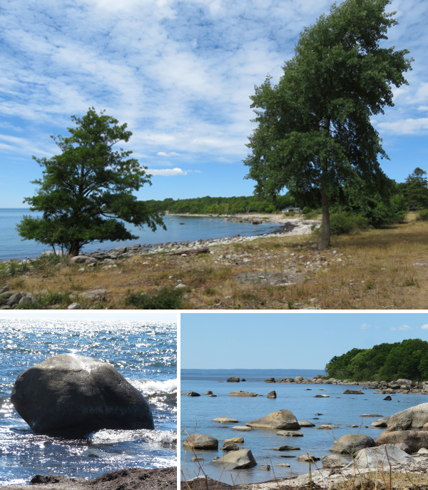 Auch auf Tärnö blieben wir unserer Devise treu: viel Ruhe, viel lesen, viel Strand. Aber der Strand ließ zu wünschen übrig. Nicht, weil er eher klein bemessen war (im Zweifelsfall hätte auch die Wiese dahinter noch Liegefläche geboten), sondern weil man nicht ins Wasser kam. Ich habe keinen Weg über die Steine/Felsen in einen schwimmbaren Teil gefunden, alles von Algen überwachsen, so dass das „Überklettern“ ziemlich gewagt schien. Es hat auch sonst keiner geschafft. Ein kleiner Steg mit Treppe ins Wasser wäre vielleicht alles, was es braucht. Eine dringender Hinweis also an die Verantwortlichen in Blekinge!