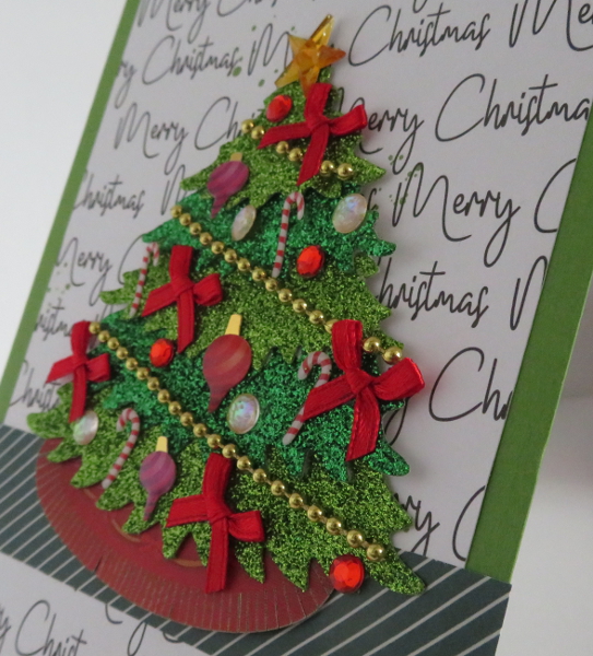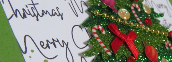 It may look as if I had used several packages of stickers and glitter but in fact this tree is one giant elaborate sticker. I’ve had it for years and somehow never wanted to „waste“ it. As always, the glitter doesn’t really show on the pictures, a last try: