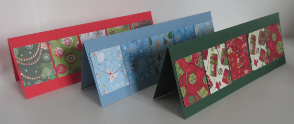 Und bei den Jingle Belles heißt es weiter Recycling… anlässlich des Earth Day am 22. April. Ich habe ein bisschen hin- und herüberlegt und dann fielen mir auch noch Kartenrohlinge in etwas ungewöhnlicher Größe in die Hände, die ich irgendwann mal günstig bekommen habe. Es stellt sich heraus: sie sind perfekt für diese Mini-Panels: