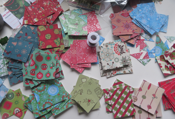 You are looking at some of the leftovers of the famous cookie bags decorated for the hospice fundraiser… back when it was still young, in 2014. That’s how long these little panels, the cut outs for the little window in the bags, have been around – I just didn’t want to throw them out: