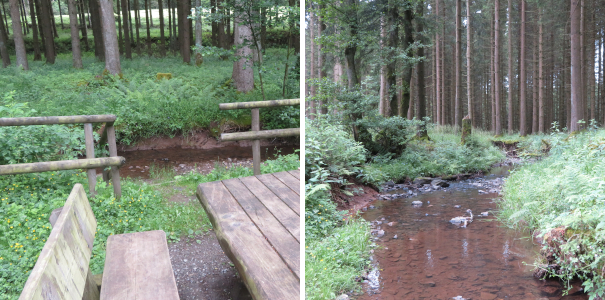 Definitiv liegt einer der lauschigsten Rastplätze ever an dieser Route, Tisch und Bänke etwas ab des Weges direkt am plätschernden Bachlauf, der an einem heißeren Tag sicher auch zu etwas Kneipp-Aktivität einlädt.