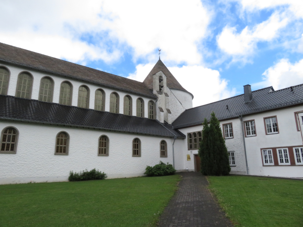 Der erste kurz Stop ist an der Abtei Maria Frieden, deren Architektur mich irritiert hat – bis wir dann rausfanden, dass sie erst 1953 gebaut wurde. Es handelt sich um ein Zisterzienserinnenkloster „strengerer Observanz“ und nach der Website sieht es so aus, als seien derzeit noch 10 Nonnen vor Ort.