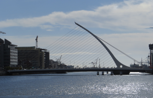Wir hatten eine private Unterkunft östlich des Zentrums, im Bereich der Grand Canal Docks gefunden (mehr oder weniger Teil des Google-Geländes) und noch vor 9 Uhr habe ich mich Richtung Norden Richtung River Liffey aufgemacht, wo es viele interessante Neubauten zu bewundern gab und solche, die noch im Werden sind (siehe oben), außerdem Möwengeschrei und glitzerndes Wasser, was ein sofortiges Urlaubsgefühl unterstützt.