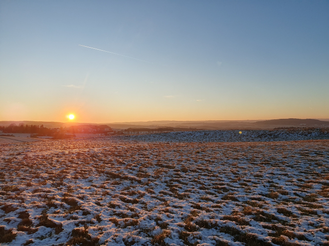 Aber dann kam der Freitag, den ich durch eine schicksalhafte Fügung frei hatte. Es war unbeschreiblich schön und ich wusste nicht, wo ich zuerst hinfahren sollte. Dann auch noch die Meldung, dass die Lifte an der Hohen Acht aufmachten und die Loipen gespurt waren. Schlitten? Langlauf? Wandern? Immer diese Entscheidungen! Ich habe mich dann, vielleicht unbewusst, für die Einsamkeit entschieden und bin den Rest des Tages in der Summe vielleicht 10 Menschen begegnet.