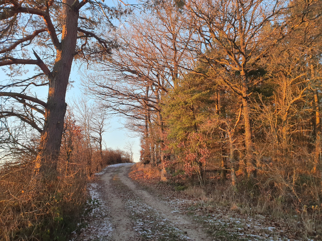 This enchating section slowly gets a disconcerting note at the end when you start to hear louder and louder gun fire – luckily, that is explained once you reach the curve pictured in the collage above: it’s an army shooting range and the path runs above it more or less. The reason for including the road in the collage is a different one, though: there’s quite a long stretch you have to walk on it (luckily there’s not a lot of traffic) and it’s a spot where the signing is not ideal. You leave the forest, meet the road, and have to walk the road uphill until you get to a T-section, turn left and walk some more on asphalt. I think I found only two signs along the way and they were well hidden.